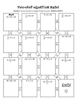 Two Step Equation Maze Worksheet Answer Key